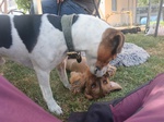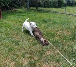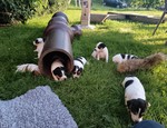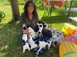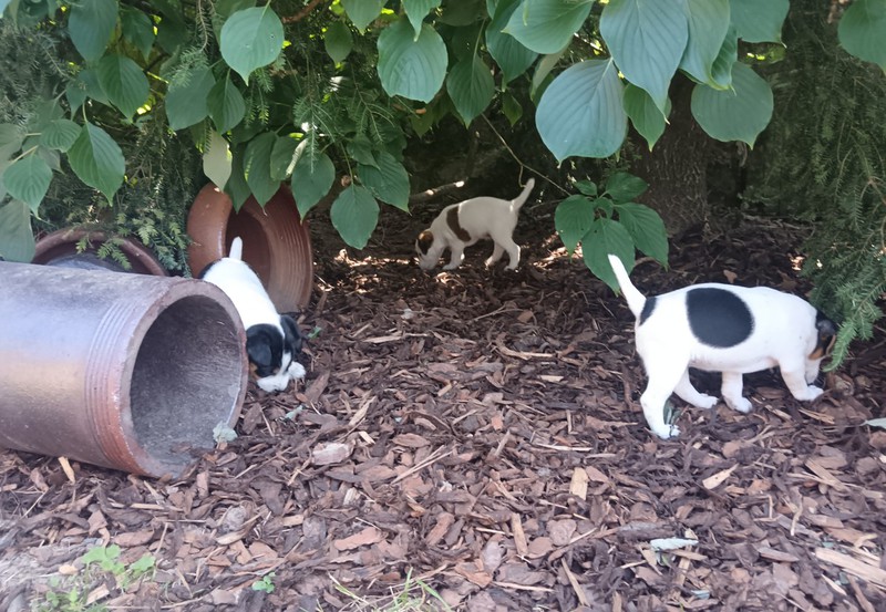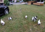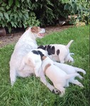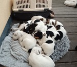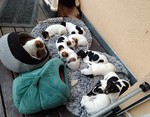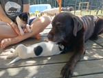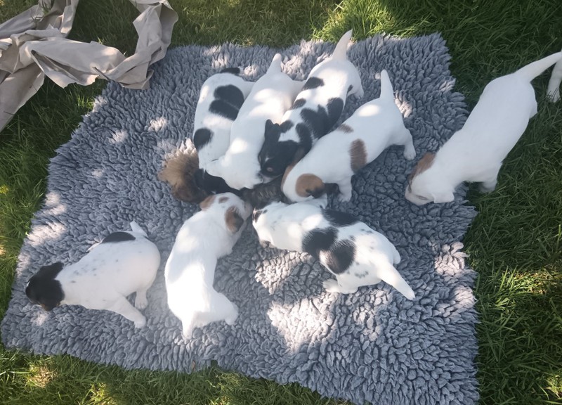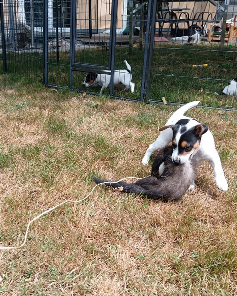Am vergangenen Wochenende war sehr viel los. Zuerst hatten wir die Wurfabnahme - allen 11 Welpen wurde Fehlerfreiheit bestätigt- was uns richtig freut. Danach sind schon die Ersten 3 Qs und Rs von ihren künftigen Familien abgeholt worden. Montag durften dann die nächsten 3 in ihre künftiges Zuhause ziehen. Von allen haben wir Rückmeldung bekommen, dass sie gut zu Hause angekommen sind und sich auch schon gut eingefunden haben. Der ein oder andere Vierbeiner hat auch schon auf den Nachwuchs gewartet :-)